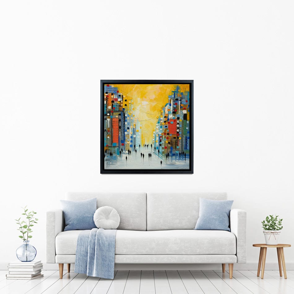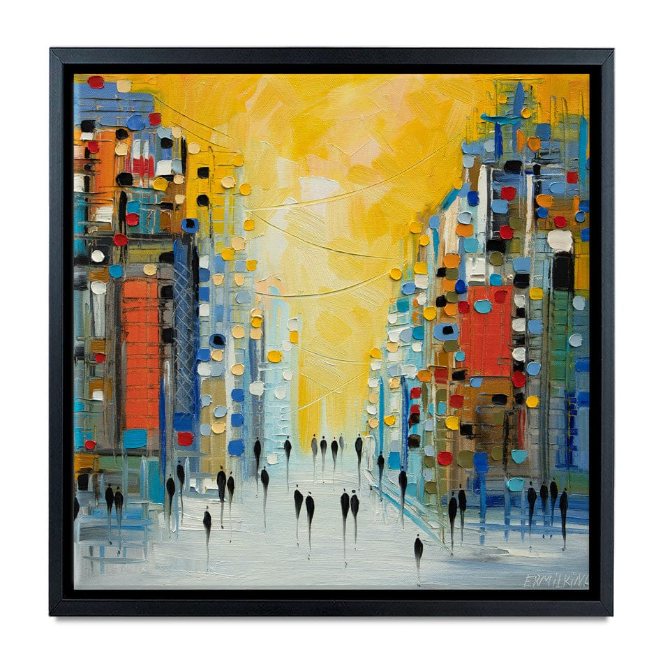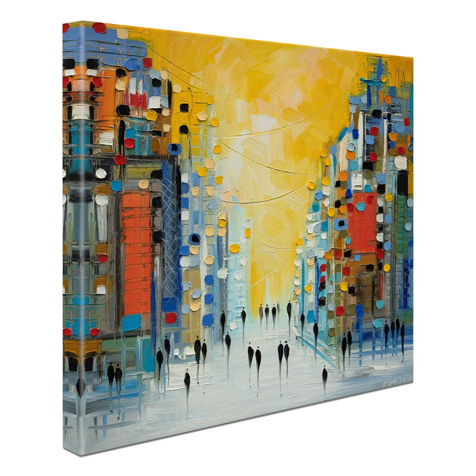 Experience the beauty of summer with our Early Sunset Canvas Print. Warm tones and a serene sunset scene come together to create a stunning cityscape. The addition of people and skyscraper buildings add depth and life to this already captivating piece. Bring the vibrancy of summer into your home with this canvas print.