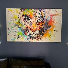 This animal-themed canvas print features an impressive tiger in a stunning rainbow paint-splash effect. This magnificent creature simply bursts out of an explosion of colourful paint splatters, creating a stunning technicolour master-piece guaranteed to bring your room alive.