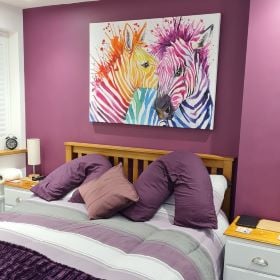 This beautiful design is bursting with colour and features two gorgeous zebras nuzzling into one another. An ideal piece of art for any wildlife lovers that will look great on the wall as a canvas. Available in a variety of sizes